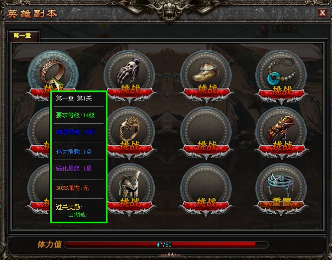 2.每次挑战副本都需消耗一点体力值(每天的体力值有限)