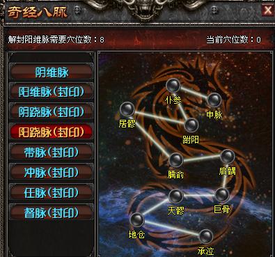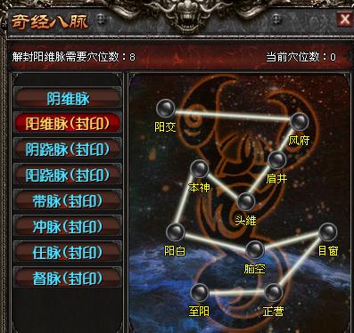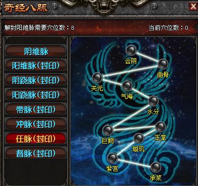 人物等级到达52级后开启经脉功能。(冲穴具有概率,不一定每次冲穴都是成功的。)